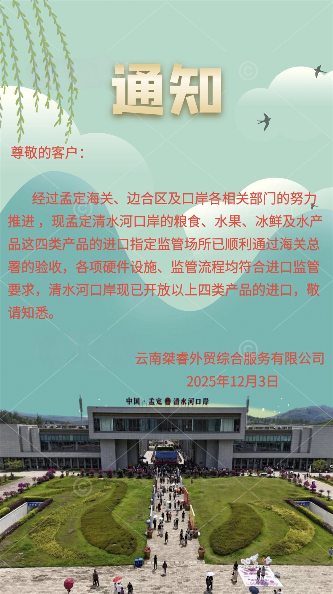 【热点新闻】清水河口岸现已开放粮食、水果、冰鲜及水产品这四类产品的进口